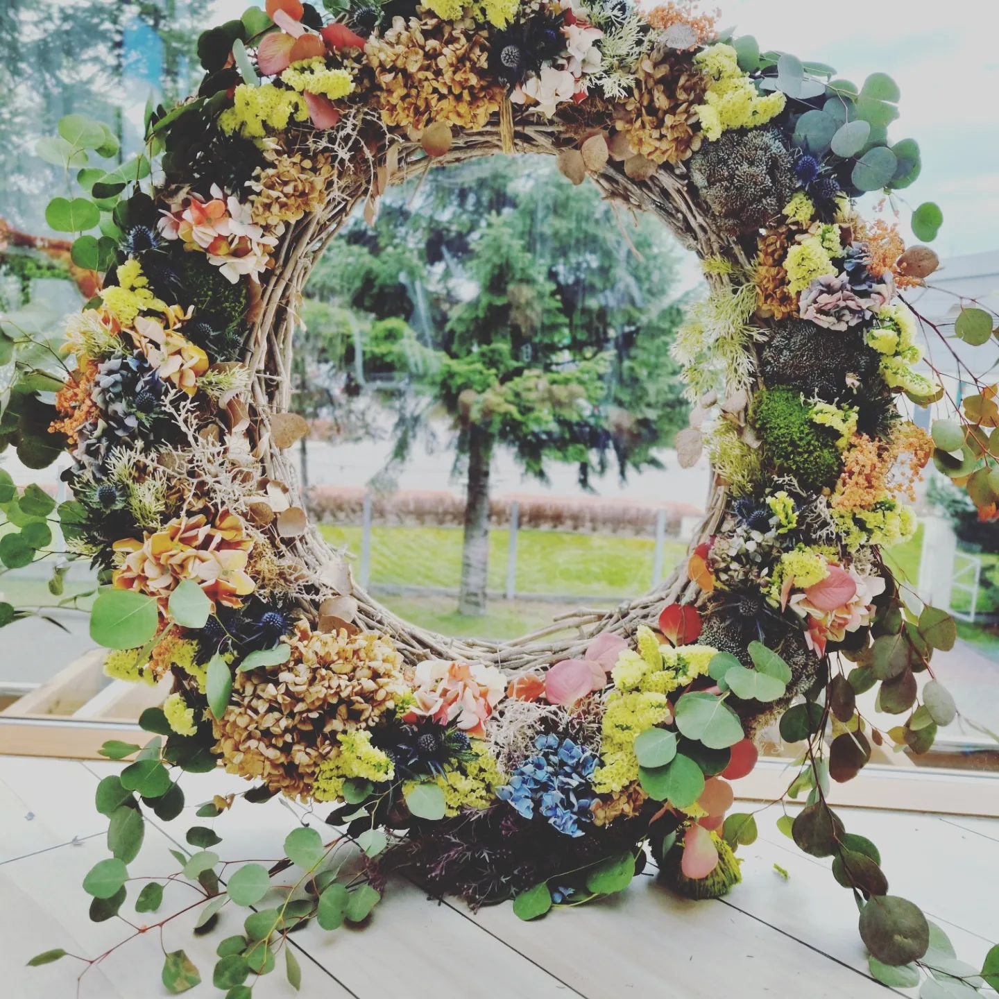 Wiosenny wianek to esencja świeżości i odradzającej się natury. Wykonany z delikatnych gałązek, pierwszych kwiatów i zielonych liści, wprowadza do wnętrza lub na drzwi powiew wiosennej energii. Jasne barwy, takie jak pastelowy róż, żółć i biel, harmonijnie łączą się z soczystą zielenią, tworząc kompozycję pełną radości i życia.