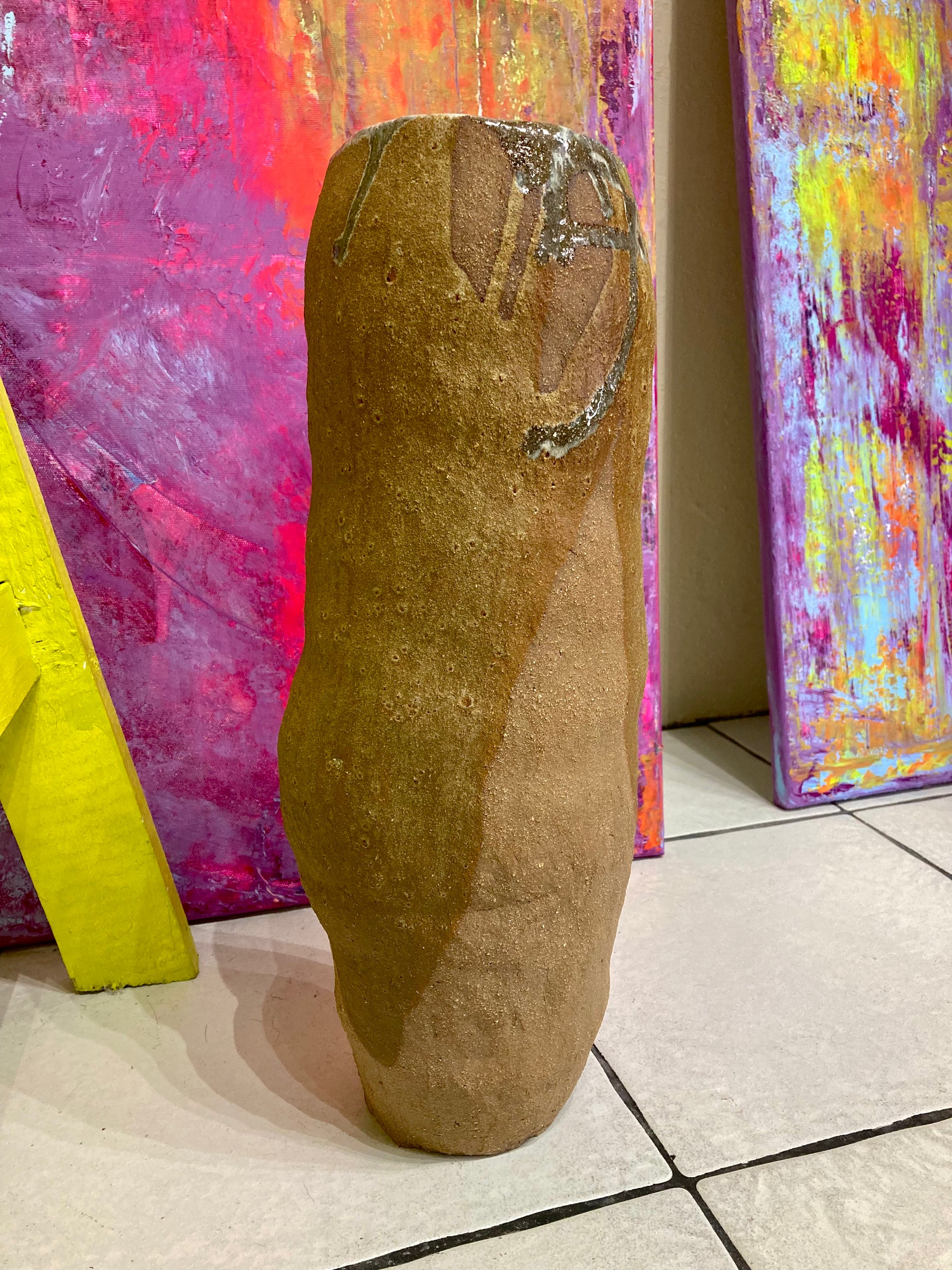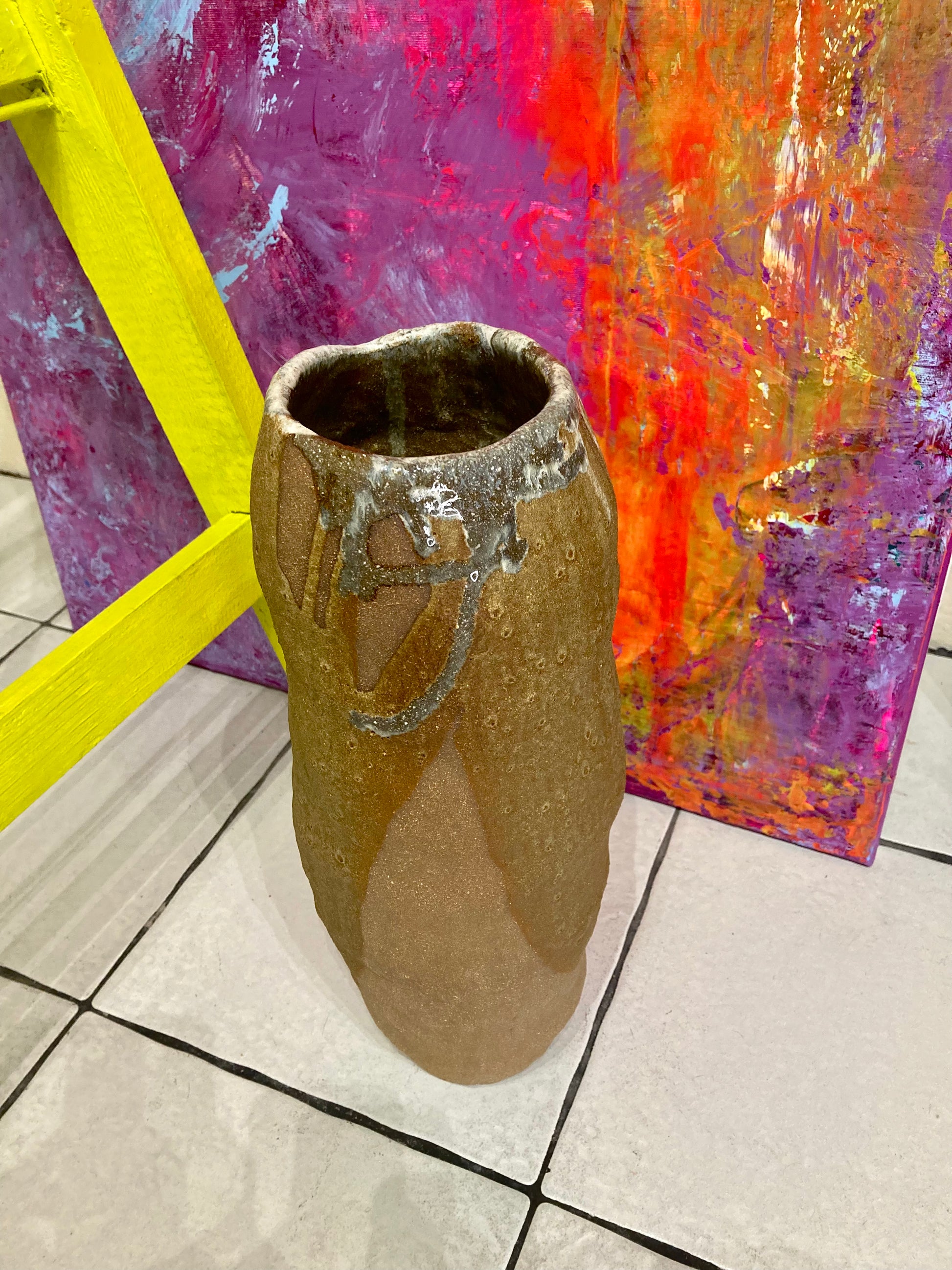 Zanurz się w naturalnym pięknie z naszym ręcznie formowanym wazonem ceramicznym. Wykonany z wytrzymałej gliny szamotowej, emanuje surowym urokiem ziemi.